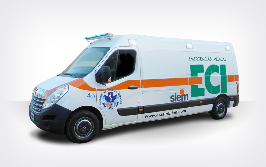 Las Unidades Móviles Asistenciales de ECI Emergencias Médicas San Juan cuentan todas, sin excepción, con identificaciones exteriores reglamentarias para el servicio que prestan, además de las identificaciones con los isologotipos de la Empresa.